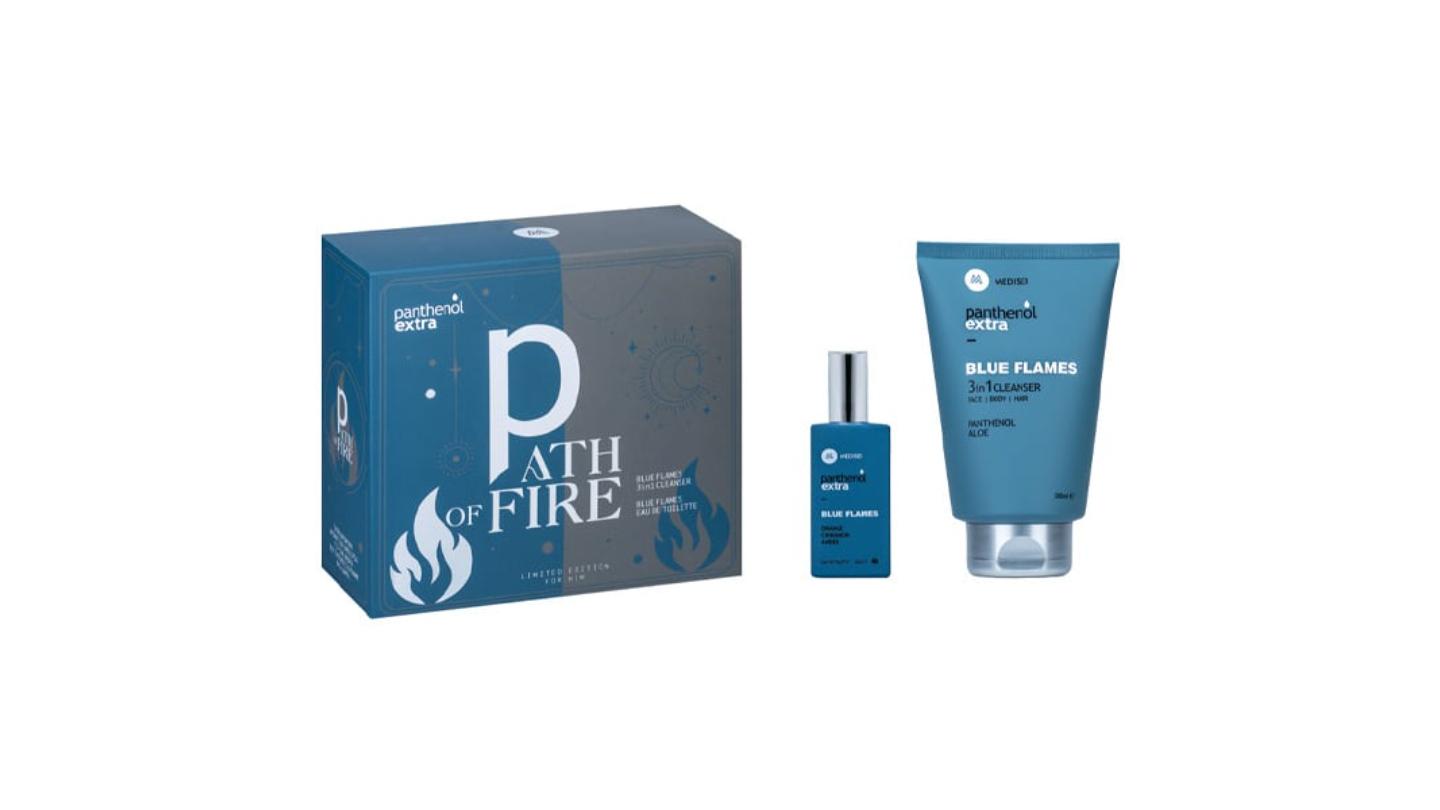 Panthenol Extra Men Promo Path of Fire με Men Blue Flames 3in1 Cleanser Ανδρικό Σαμπουάν – Αφρόλουτρο, 200ml & Blue Flames Eau De Toilette Ανδρικό Άρωμα, 50ml, 1σετ