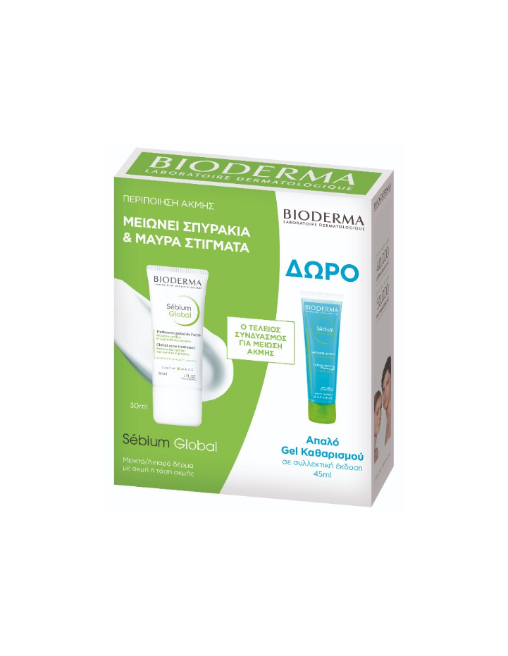 Gift Set για την περιποίηση της ακμής, με Sebium Global για μεικτό – λιπαρό δέρμα με τάση ακμής 30ml & δώρο απαλό gel καθαρισμού σε συλλεκτική έκδοση 45ml.