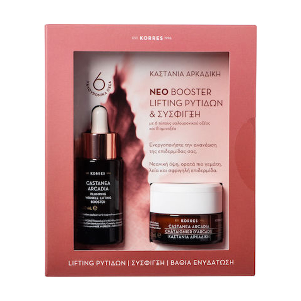 Νέο Booster Lifting Ρυτίδων & Σύσφιξη με 6 τύπους υαλουρονικού οξέος και 8 αμινοξέα. Με έμπνευση τη συνεχή αναγέννηση της Καστανιάς Αρκαδικής που ανθίζει τουλάχιστον 500 φορές κατά τη διάρκεια της ζωής της, επιλέχθηκε από την ΚΟΡΡΕΣ η Λουπεόλη, το πιο ισχυρό αντιοξειδωτικό της.