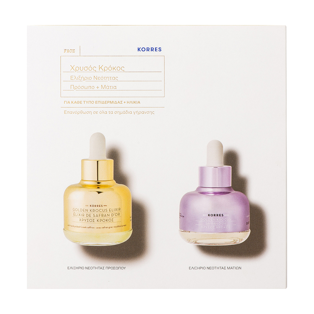 Το φρέσκο εκχύλισμα από τα πολύτιμα στίγματα του Κρόκου ενσωματώνεται στη φόρμουλα εντός 24 ωρών, για μέγιστη αντιοξειδωτική δράση, ενισχύοντας την άμυνα του δέρματος για υγιές, λαμπερό πρόσωπο. Μια μόνο σταγόνα από το ελιξήριο Χρυσός Κρόκος ενισχύει τη δράση κάθε κρέμας και δρα επανορθωτικά σε όλα τα σημάδια γήρανσης επιτυγχάνοντας σύσφιγξη & lifting, αντιρυτιδική δράση, ενυδάτωση, ομοιόμορφο τόνο και λάμψη. Σε συνεργασία με τον Αναγκαστικό Συνεταιρισμό Κροκοπαραγωγών Κοζάνης.