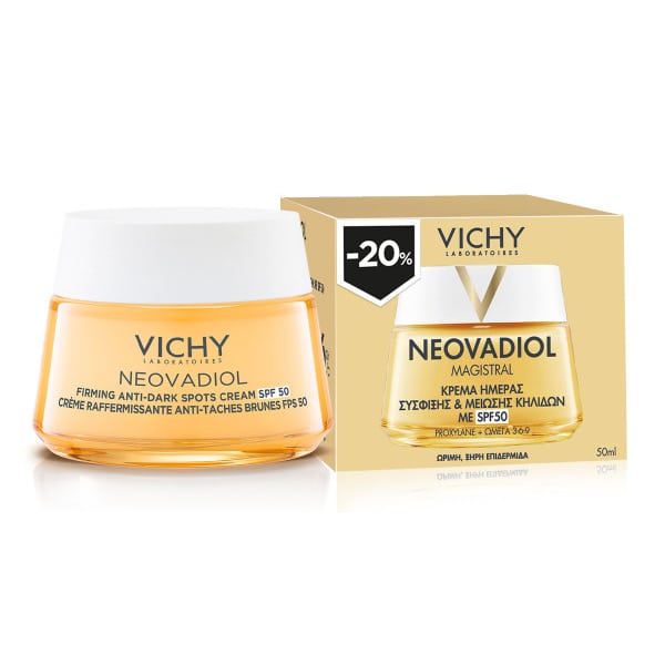 Η Neovadiol Magistral Κρέμα Ημέρας Σύσφιξης & Μείωσης Κηλίδων με δείκτη προστασίας SPF50 , διορθώνει τις ρυτίδες, μειώνει τις κηλίδες και βελτιώνει την ελαστικότητα, καλύπτοντας όλες τις ανάγκες της επιδερμίδας.
