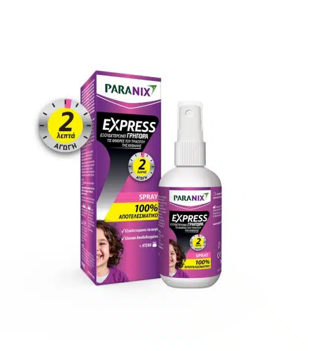 *Το Paranix Express έδειξε 100% εξουδετέρωση φθειρών και νυμφών μετά από 2 λεπτά σε in-vitro μελέτες.