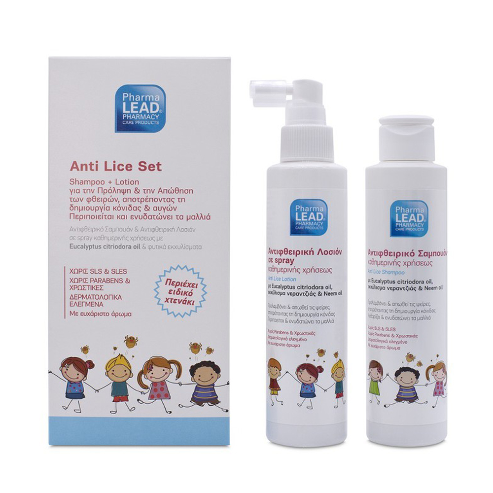 Αντιφθειρικό Σαμπουάν & Αντιφθειρική Λοσιόν σε spray καθημερινής χρήσεως με eucalyptus citriodora oil & φυτικά εκχυλίσματα, που περιέχει ειδικό χτενάκι για την απομάκρυνση των φθειρών.